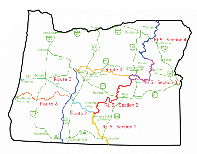 Day 1 - a long stretch of pavement down to Mitchell OR via the Painted Hills, then dirt roads to intersect the ORBDR route 4.